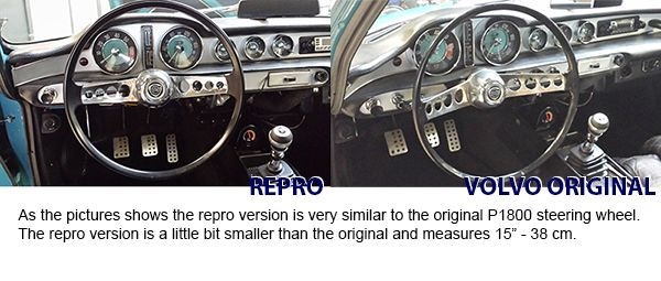 P1800 TWO SPOKE STEERING WHEEL FITS ALL P1800 JENSEN BUILT CARS 1961 TO 1962 AND ALL P1800S MODELS 1963 TO 1969. NOTE THIS WHEELS IS SMALLER AT 15" / 38 cm |
