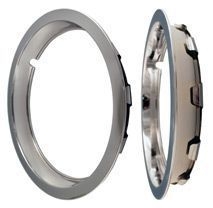 # DISCONTINUED # SET OF FOUR WHEEL OUTER TRIM RINGS. VOLVO FITTED THESE TO P1800ES MODELS LATE P1800E MODELS. FUEL INJECTION CARS ONLY. THE PICTURE SHOWS TWO TRIMS BUT YOU BE BE SUPPLIED A SET OF FOUR. |