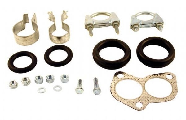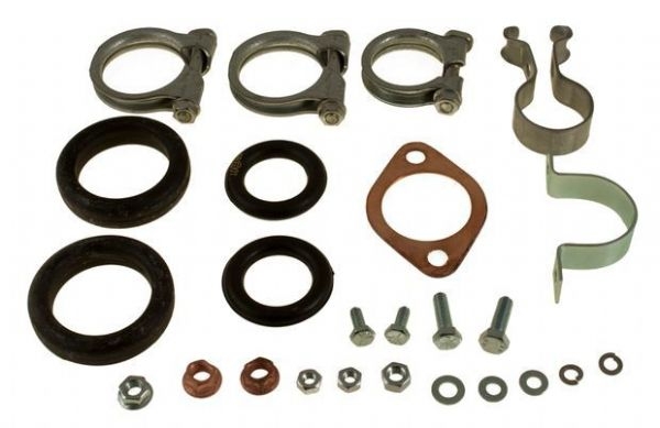 EXHAUST FITTING KIT. FITS ALL AMAZON B18 WITH SINGLE FRONT PIPE FLANGE. COMES WITH GASKET,MOUNTING RUBBERS AND CLAMPS |