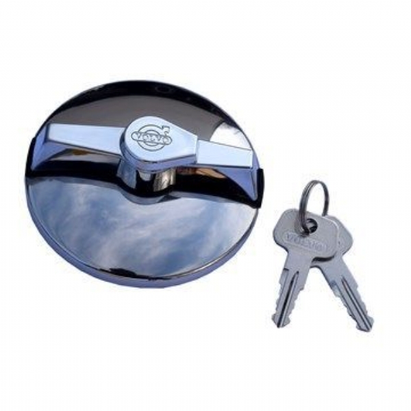 REPRODUCTION STAINLESS STEEL LOCKING FUEL CAP WITH VOLVO LOGO ON CAP and KEYS. THIS IS MADE TO FIT ALL 142 144 142 and 164 MODELS UPTO >1973. |